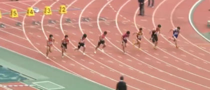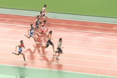 同じく、大会2日目の10月17日(土)、100m予選に徳廣くんが出場。雨が降りしきる中、11秒23のタイムで、予選1組2位となり、予選を通過。全体の7位となり、翌10月18日(日)のA決勝に進出することが決まりました。