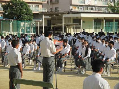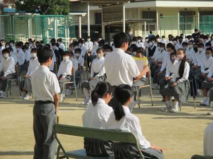 候補者の演説も推薦人の演説も、思いや意気込みが伝わってきて、よかったです。また、生徒の皆さんも、真剣なまなざしで、食い入るように演説を聴いていました。聴く姿勢も素晴らしかったです。