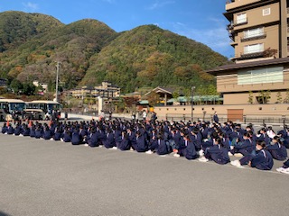退所式です。昼神グランドホテル天心の皆さん、お世話になりました。ありがとうございました。
