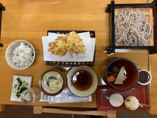 五平餅とそば。信州らしいお昼です。
