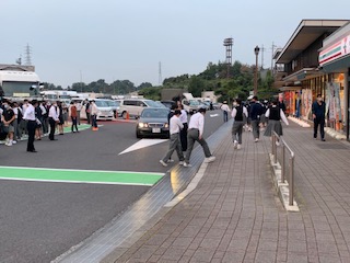 草津サービスエリアで最後のトイレ休憩です。予定より25分早いです。全員元気です。