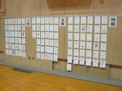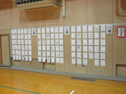 写真は、体育館内に展示されている2年生国語科の「創作短歌」の作品です。