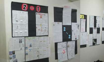 写真は、2年生社会科の夏休みの宿題「歴史新聞」の作品です。