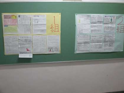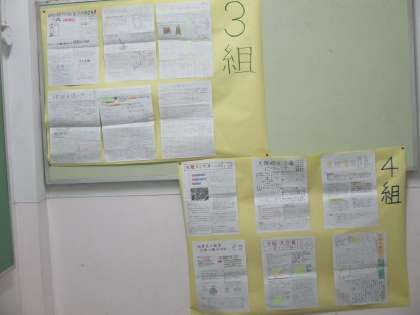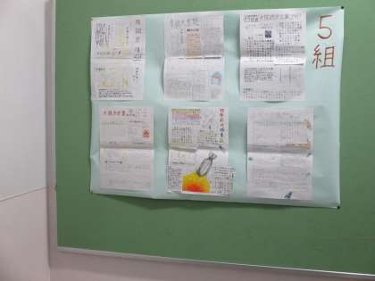 写真は、1年生の平和学習をクラスごとで、1年1〜5組の作品です。