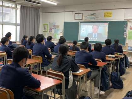 2月17日(水)本日の全校集会を各学年2クラスのみ、「Teams」で試行実施しました。生徒たちからは「おぉ〜っ!」と言う歓喜の声が聞こえるとともに、人の顔を見ながら話を聞くことの大切さを改めて気づくことが出来ました。画像と音声とで多少のズレはありましたが、改善しながら今後も活用していきたいと思います。