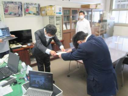 5月17日(月)5限目に前期学級役員の認証式をリモートで行いました。校長室に各学年代表が認証状を受け取り、その後、各教室にて担任の先生からクラス委員に受け渡しをしました。