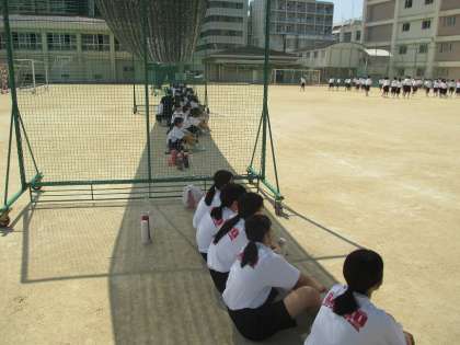 今年度初の学年行事ということもあり、生徒も先生方も大盛り上がりでした。今日は気温も高かったですが、随時の水分補給と遮光シートで影を作り、熱中症対策も万全で行いました。