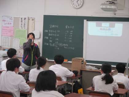 本日、5限目に1年生は進路学習を、2・3年生は道徳の授業を行いました。その後、全学年対象に「熱中症講話」を行いました。無理をせず徐々に体を暑さに慣らしましょう。