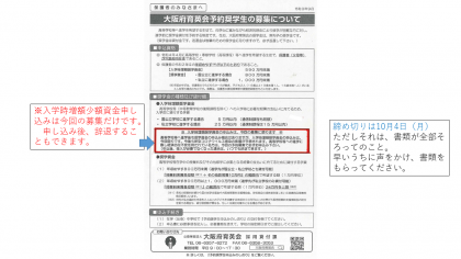 入学時増額奨学資金の申し込みは今回のみになります。この機会を逃さず申し込みをしてください。