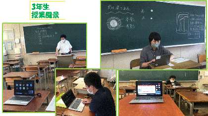 ・本日は3学年とも「Teams」で授業を行いました。先生方は工夫して授業に臨み、チームで授業配信に取り組みました。