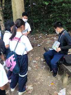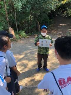 山頂に上がれば、学年主任の先生が!展望台から、「ヤッホー!」の声を自然に出していました。