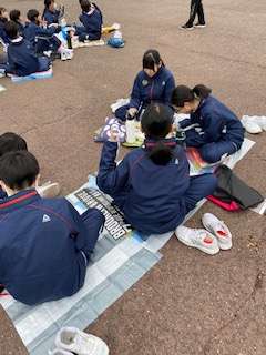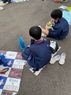 みんなで楽しくランチタイムです。朝早くからお弁当作りありがとうございました。