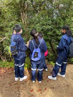 午後からは各クラス、各班に分かれてオリエンテーリングをしています。それぞれのポイントに先生たちが待ち構え、みなさんに数々の問題を出します。みんなで協力してクリアしてください。