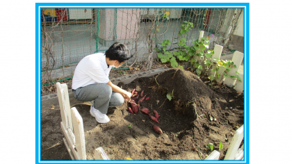 今日は「蒲生菜園」でサツマイモの収穫をしました。たくさんのサツマイモが採れて、かかわった人たちは大喜びです。今まで大切に育ててきてよかったですね。