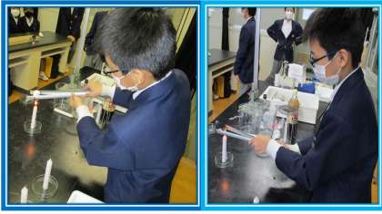 下の写真は、科学部の実験です。今日は銀の卵を作りました。卵を素焼きして、真っ黒になったものを水につけると銀色になるのです。このように科学部では毎回のように実験に取り組んでいます。