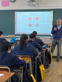 1年生はヒューマンアカデミーの川島先生をお招きして各学級でSPトランプのご指導を仰ぎました。SPトランプを使って自分の適性を知る良い機会となりました。