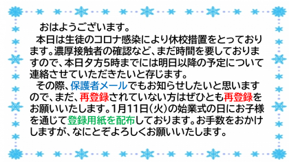 学校からの連絡を迅速に行うために、保護者メールの再登録をお願いします。
