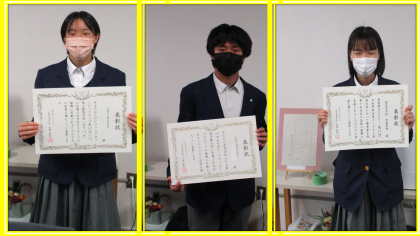 本日昼休みに、校長室で表彰状の授与が行われました。内容は以下の通りです。
