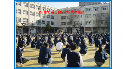 本日、「3年生を送る会」が行われました。感染拡大防止のため、グラウンドで、例年よりも縮小した形での送る会でした。