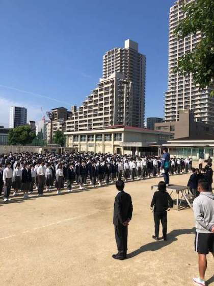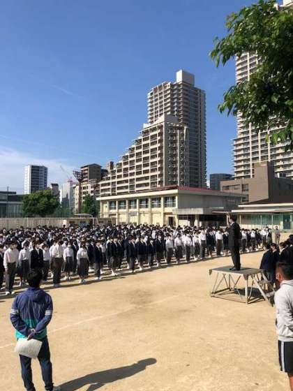 校長先生の講話の後、生徒指導主事の先生から、家庭訪問でもお渡ししています「蒲生中生活指導の対応チャート」のお話がありました。