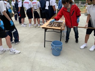 3年修学旅行 鰹の藁焼き体験