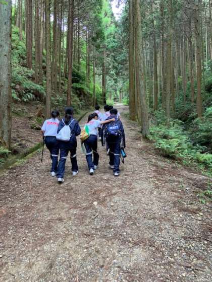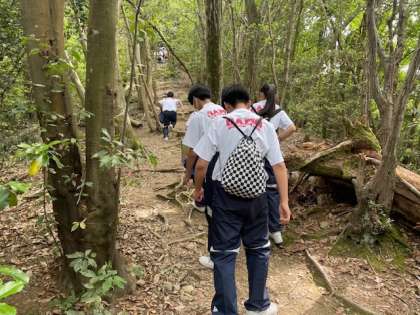 険しい道もみんなで声を掛け合い頑張って登っています。