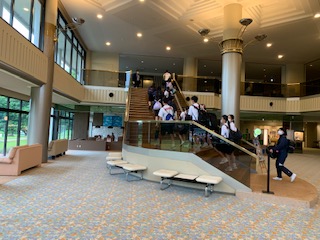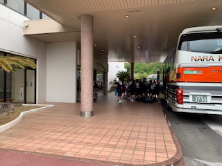 ロイヤルホテル土佐に到着。20分遅れですが、予定どおりのプログラムを実施します。