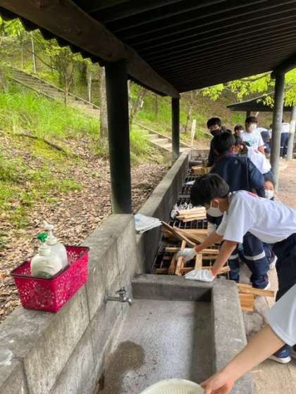 朝から降っていた雨も上がり、涼しいなか飯盒炊爨スタートです。