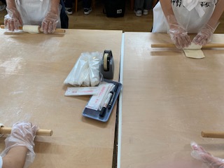 生地を棒に巻き付けて押しながら伸ばしていきます。