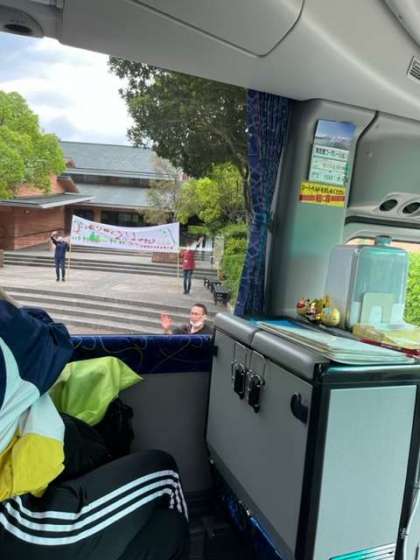 自然の家のスタッフの皆さんに見送られ、ただいま学校へ向けて出発しました。