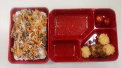 1.ミンチ肉の炒めものと、2.切り干し大根、ニンジンのナムル