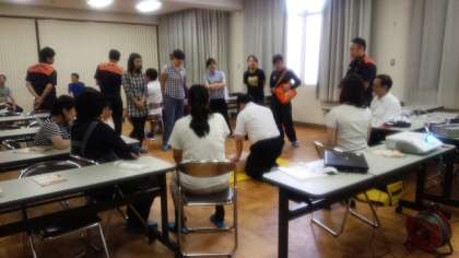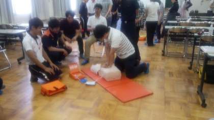 研修内容は、応急手当の講義と、応急手当の実技を行いました。
