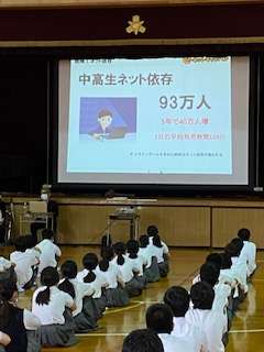 本日2年生の総合的な学習の時間で、インターネットの安全な使い方についての講座を行いました。