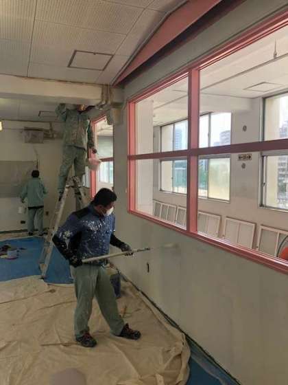 第1音楽室の塗装作業もいよいよ終盤です。出来上がりが楽しみですね!