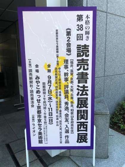 蒲生中学校では、正面玄関に「大切にしたい言葉」を定期的に更新して掲示しています。この言葉を書いていただいているのが本校管理作業員の澤田直子さんです。このたび、澤田さん作品が、読売書法展関西展に入選しました。京都市「みやこめっせ」で9月11日まで展示されています。今後も「言葉の力」を「美しい文字」でみなさんに伝えていきます。
