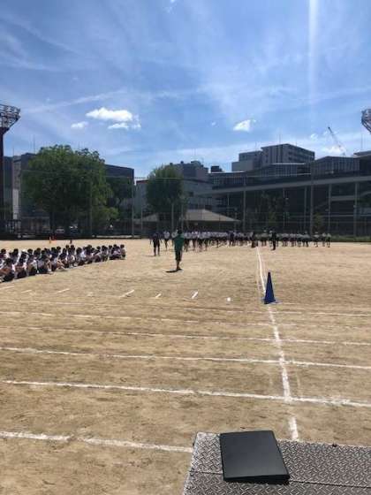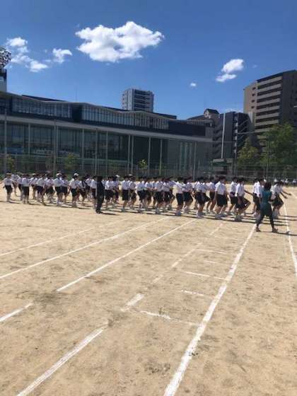 3・4時間目に一年生学年練習をしています。暑い中ですが、生徒も先生も一丸となり行進の練習をしています。広い蒲生グラウンドでの練習は今日が初めてなので、行進曲に足並みが揃わず、苦労している様子もありました。みなさん、負けずに頑張れ!