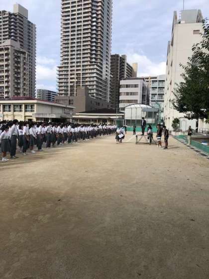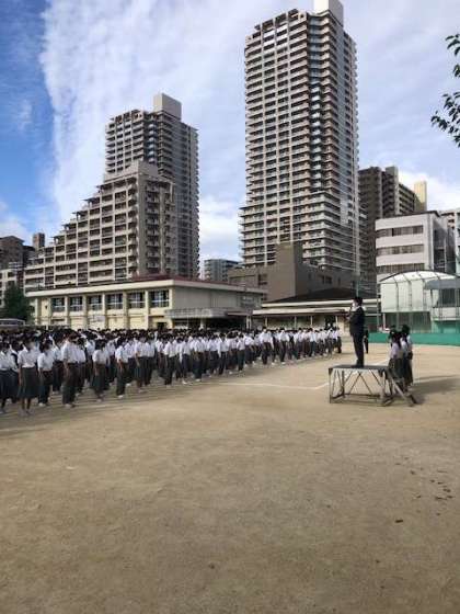 みなさんおはようございます。清々しい朝の中、全校集会を行いました。各種大会の表彰後、校長先生より先日の敬老の日に因んで、ヘミングウェイの「老人と海」の講話がありました。