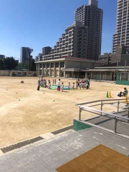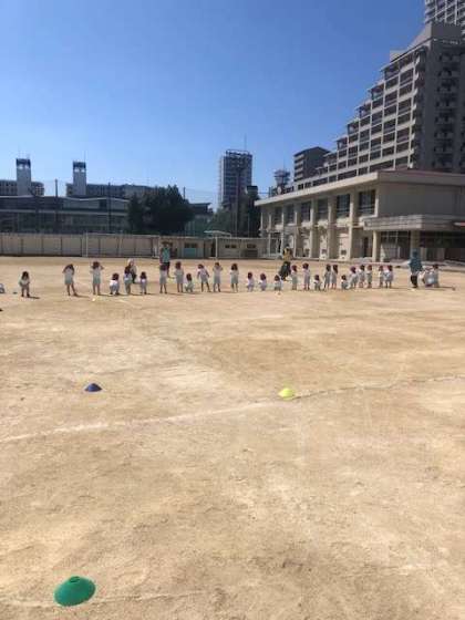 本校のグラウンドを使用し、成育児童センターやわんわん運動会の園児たちが練習をしています。本校の体育大会も今週末に行われますがみんな一生懸命練習に励んでいます。