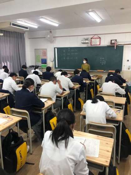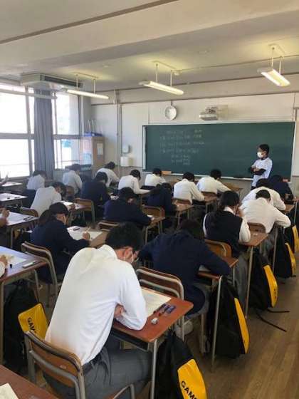 昨日に引き続き、中間テストに取り組んでいます。本日、一年生は2教科のテストですが、二、三年生は3教科のテストになります。来週の授業でテスト返しする予定です。