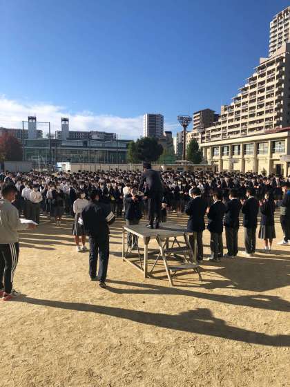 みなさん、おはようございます。朝晩が冷え込んできましたので、体調管理には気をつけてください。今朝の全校集会では文化発表会で展示した学級旗の表彰を行いました。