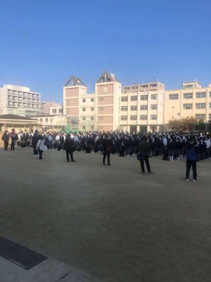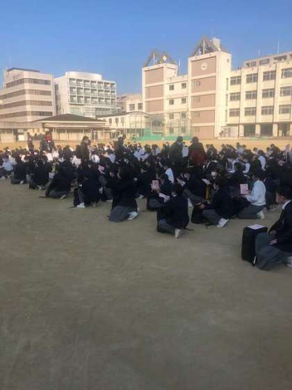 みなさんおはようございます。天気にも恵まれ、一年生も校外学習「大阪市内めぐり」に向かいます。班ごとで地下鉄に乗り、市内の各施設を見学します。集合点呼後、持ち物の確認をしています。みんなで協力し、良い校外学習にしてください。
