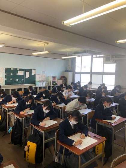 本日より期末テストが始まりました。これまでの学習の成果を試すものです。みなさん、最後まで頑張ってください。