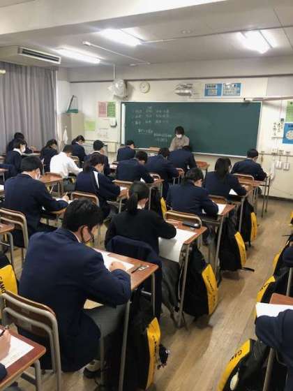 三学期最初の授業は、3年生第五回実力テストと1・2年生チャレンジテストとチャレンジテストPlusです。これまでの学習成果や、今の自分の力を知るためのテストです。みなさん、最後まで頑張ってください!