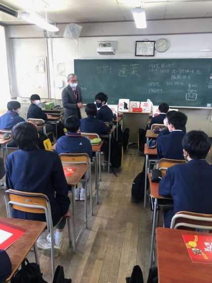 551の蓬莱さんでは、名前の由来を人気アニメのキャラクターに例えて楽しく説明していました。紳士服のスリーエムさんでは生徒たちが自分たちでコーディネートし、そのテーマを発表していました。どの事業所さんもお話が楽しく、興味深いものでした。ありがとうございました。