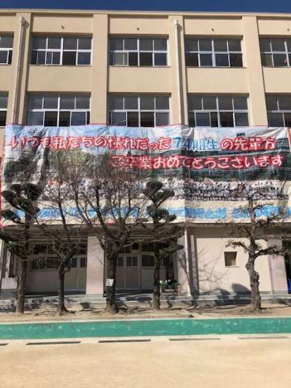一年生、二年生は密かにモザイクアートを作成していました。三年生たちは驚きと感動です!