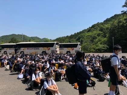 大阪府立少年自然の家に到着して入所式をしました。