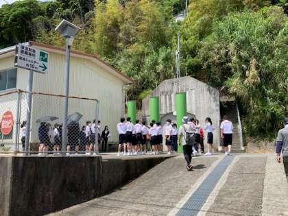 シェルターの中を見学しました。厳重な扉と精密なカメラ、階段の高さに驚きました。
