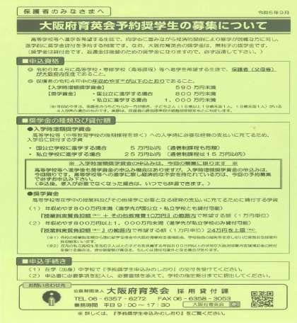 大阪府育成会予約奨学生の募集について