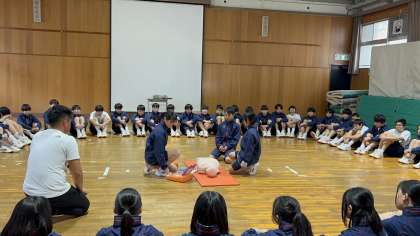 胸骨圧迫を初めて行う生徒もおり、胸を押す力が弱かったり、規則正しいリズムで押せなかったりと苦労していました。