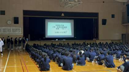 生徒会や各部活動の後輩たちからのメッセージをみんなで鑑賞しました。